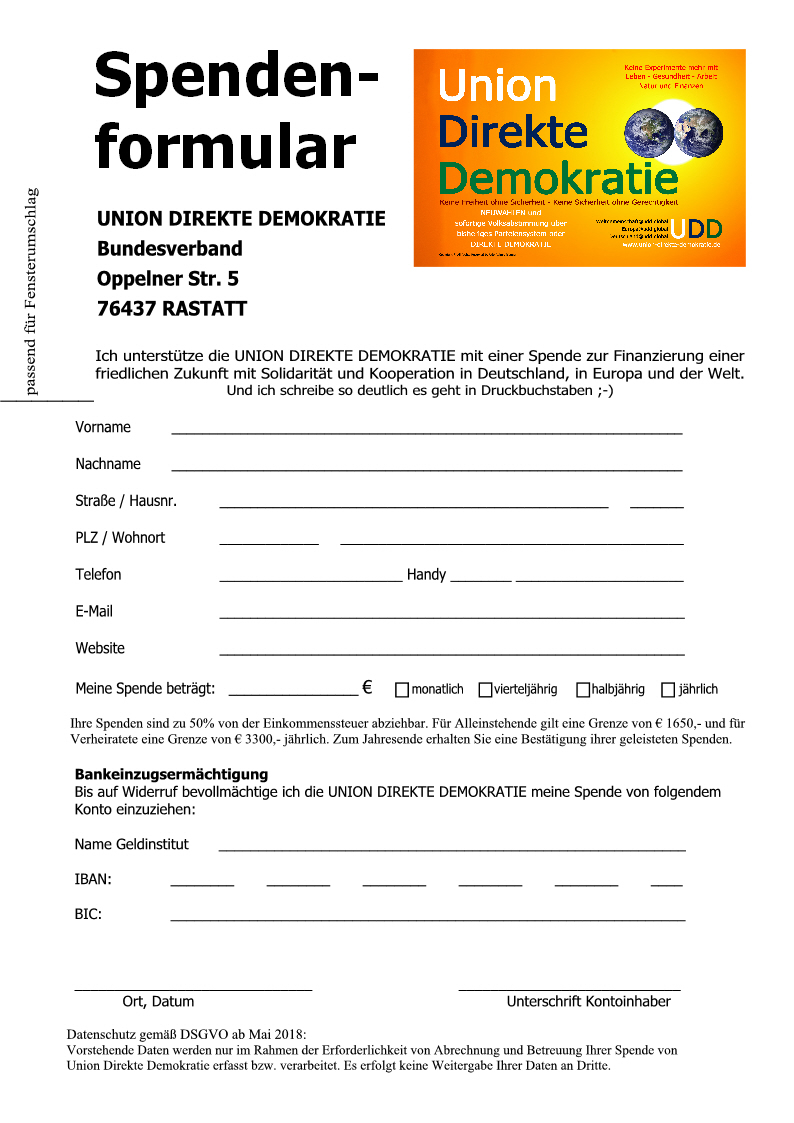 Zusendung per Post. Gescannt als E-Mail oder direkt aus Adobe an info@union-direkte-demokratie.de
